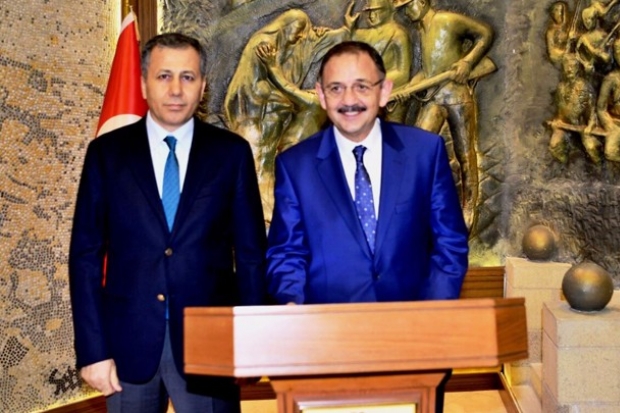 Valilik şeref defterini imzalayan Çevre ve Şehircilik Bakanı Mehmet Özhaseki Gaziantep Valisi Ali Yerlikaya ile kısa bir toplantı yaptı.