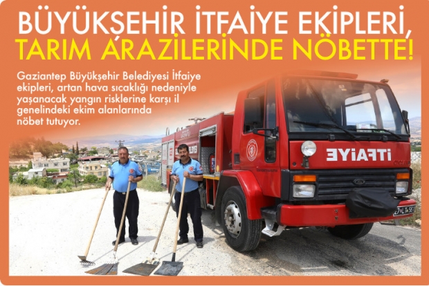 Gaziantep Büyükşehir Belediyesi İtfaiye ekipleri, artan hava sıcaklığı nedeniyle yaşanacak yangın risklerine karşı il genelindeki ekim alanlarında nöbet tutuyor.