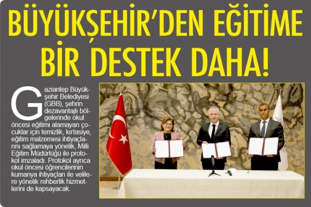 Gaziantep Büyükşehir Belediyesi (GBB), şehrin dezavantajlı bölgelerinde okul öncesi eğitimi alamayan çocuklar için temizlik, kırtasiye, eğitim malzemesi ihtiyaçlarını sağlamaya yönelik, Milli Eğitim Müdürlüğü ile protokol imzaladı. Protokol ayrıca okul öncesi öğrencilerinin kumanya ihtiyaçları ile velilere yönelik rehberlik hizmetlerini de kapsayacak.