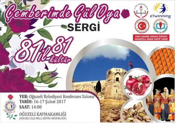 Milli Eğitim Bakanlığı Yenilik ve Eğitim Teknolojileri Genel Müdürlüğünün desteklediği e-Twinning Projesi olan “Çemberimde Gül Oya” sergisinde 81 ilden 81 kültürün paylaşılacak. Farklı bölge ve illerde somut ve somut olmayan kaybolmaya yüz tutmuş veya halen yaşamını sürdürmeye çalışan kültürel özellikleri taşıyan konuları kapsamayan “Çemberimde Gül Oya” sergisi İstanbul, Tunceli, Bursa, Hakkari, Ankara gibi illerden sonra 58. Kez olarak ise Gaziantep'te açılacak.