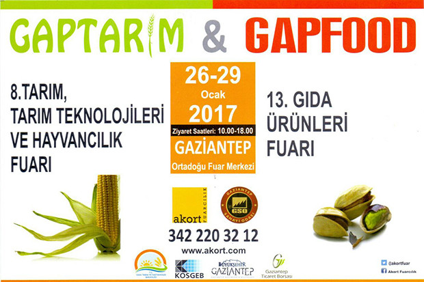 Gaziantep Sanayi Odası tarafından, Gaziantep Ticaret Odası, Gıda, Tarım ve Hayvancılık İl Müdürlüğü, Gaziantep Tarım Kredi Kooperatifleri Birliği, Gaziantep Ziraat Odası, Gaziantep Ticaret Borsası, Güneydoğu İhracatçılar Birliği’nin destekleriyle Akort Fuarcılık organizasyonuyla düzenlenen GAPTARIM ve GAPFOOD fuarları ziyaretçilerle buluşacak.