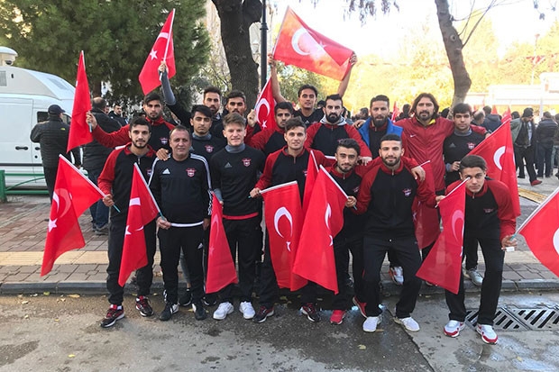Gaziantepspor futbolcuları, Türk bayrakları ile ABD'nin Kudüs kararına tepki gösterdi.