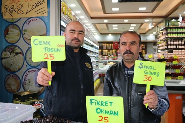 Özuğur, "En pahalı zeytinimiz Şenol Güneş adını verdiğimiz zeytin, 30 TL’den satıyoruz. En ucuzu ise Gökhan Gönül adını verdiğimiz zeytin onu da 11 TL’den satıyoruz. Beşiktaş Şampiyonlar Ligi’nde iyi ilerliyor. Başarısının devamını diliyoruz" dedi.