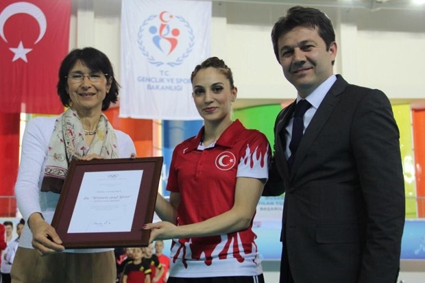 Türkiye’nin ilk olimpik cimnastikçisi Göksu Üçtaş Şanlı’ya Uluslararası Olimpiyat Komitesi (IOC) tarafından Kadın ve Spor Başarı Belgesi verildi.