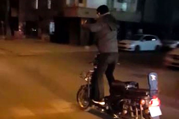 Şehitkamil ilçesinde yaşanan olayda, seyir halindeki motosikletin üzerinde ayağa kalkan kimliği belirsiz genç, bir süre sonra direksiyonu da bıraktı. O anlar, yoldan geçen diğer sürücüler tarafından saniye saniye kaydedildi. Görüntülendiğini fark eden genç bir süre motosiklete oturarak hızla uzaklaştı.