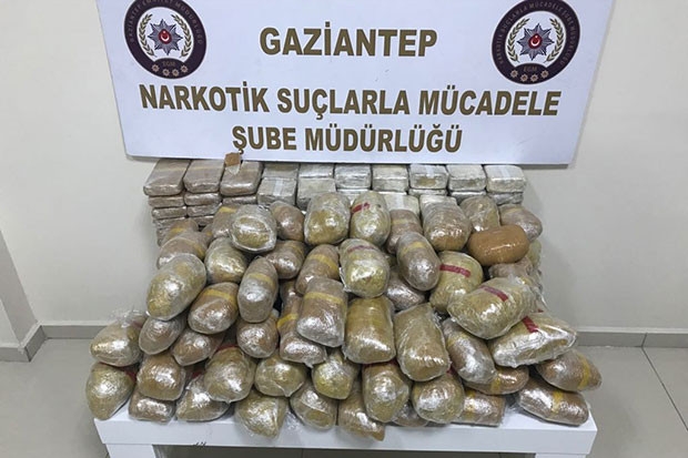 Gaziantep Emniyet Müdürlüğü Narkotik Şube Müdürlüğü ekiplerinin istihbarat çalışmaları çerçevesinde içerisinde 150 kilo eroinin bulunduğu kamyon yakın takibe alındı. Gaziantep’e girişi sırasında uyuşturucunun yer aldığı kamyona operasyon düzenleyen narkotik timleri kamyona gizlenmiş 150 kilo uyuşturucu maddeyi ele geçirdi.