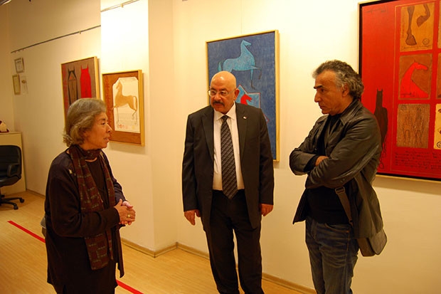 Eserlerindeki atların kimi yerde başını yem torbasına soktuğunu, sırtında yerel motiflerle süslü heybe taşıdığını ve çoğu zaman bir göz yanılmasını da beraberinde getirdiğini kaydeden Şahbudak, “Resim sanatında konu seçenekleri, genellikle sanatçının kişisel tercihleri doğrultusunda biçimlenir. Yunan mitolojisinde Zeus’un bir kuğu kılığına girmesi gibi, benim resimlerimde de at, kendi içinde gizlediği bir insan suretine gönderme yapar. İzleyiciye atın temsil ettiği sevecenliğe ek olarak, bu temsilin de ötesinde ‘sıcak’ görünmesinin nedeni budur. Buradaki at bir figürdür” diye konuştu.
