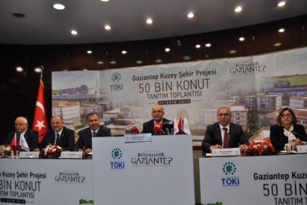 50 Bin Konut Tanıtım Toplantısında konuşan TOKİ Başkanı Mehmet Ergün Turan, “Gaziantep için yeni bir yaşam alanı olan 50 Bin Konut Projesi’nin tanıtımını yapmak için buradayız. Yaklaşık 300 bin nüfusluk yeni bir şehir olan Kuzey Şehir Projesi’nde üretim aşamasına gelmiş bulunmaktayız. Türkiye’nin 81 ilinde 740 şantiyede faaliyet gösteriyoruz. 2002 yılından bu yana idaremizin projelendirdiği konut sayısı bu ay itibariyle 700 bin rakamına ulaşmış durumdayız. Aktif olarak her yıl 50 bin konut yapan bir idareyiz. Konut idaresi artık sadece konut değil master planlı şehirler üretiyor. 8,5 milyon metrekarelik alanda 50 bin konutluk Gaziantep Kuzey Şehir Projesi söz konusu Yenilenen Şehirler Projesi’nin en büyük uygulama alanını oluşturuyor. Kuzey Şehir Projesi Türkiye’nin uluslar arası ölçekte uygulanan göz bebeği projesi olacak” diye konuştu.