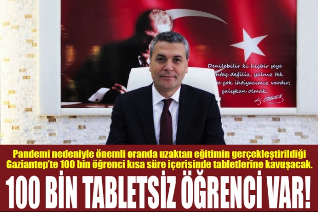 Gaziantep İl Milli Eğitim Müdürü Yasin Tepe, pandemiden dolayı kentte uzaktan eğitim görecek olan öğrenciler içerisinde 100 bininin tablete ihtiyacı olduğunu açıkladı. Bu konuda Gaziantep Büyükşehir Belediyesii ilçe belediyelerle bazı sivil toplum kuruluşlarının “askıda tablet” kampanyasına destek vereceğini açıklayan Tepe, tabletlerin kısa süre içerisinde sahiplerine ulaşacağını kaydetti.