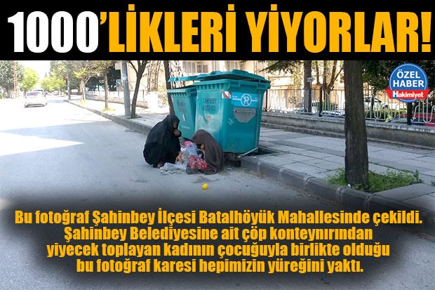 Bu fotoğraf Şahinbey İlçesi Batalhöyük Mahallesinde çekildi. Şahinbey Belediyesine ait çöp konteynırından yiyecek toplayan kadının çocuğuyla birlikte olduğu bu fotoğraf karesi hepimizin yüreğini yaktı. Kent genelinde dayanışma anlamında ortaya konan yardımlaşmaya en güzel örneği Gaziantep Valiliği ile Büyükşehir Belediyesi verdi. Diğer yandan yardım faaliyetlerini genelde objektiflerin karşısında gerçekleştiren Şahinbey Belediyesinin Başkanı Mehmet Tahmazoğlu, koronavirüs salgını nedeniyle ortaya koyduğu yardım faaliyetleri basında boy boy haber olurken diğer yandan aynı belediye başkanı kendi sokaklarında aç dolaşan vatandaşlardan bir haber oldu.