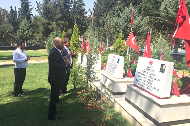 Ejder Demir, Gaziantep’te, 15 Temmuz Demokrasi ve Milli Birlik Günü nedeniyle Gaziantep Şehitler Mezarlığı’nı ziyaret etti. Bu vatan uğruna can veren şehitlerimiz ve 15 Temmuz şehitlerinin mezarlarını ziyaret eden Demir, bol bol dua etti.