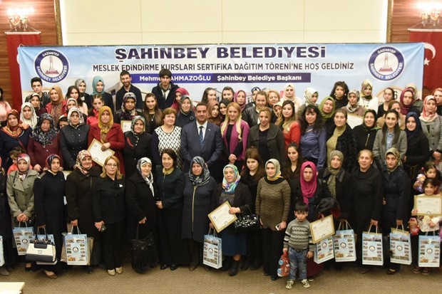 Şahinbey Belediyesi'nin düzenlediği proje kapsamında, Meslek Edindirme Kursları'nda eğitimlerini tamamlayıp mezun olan 195 kursiyer sertifikalarını aldı.