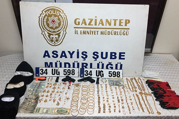 Gaziantep Emniyet Müdürlüğü Asayiş Şube Müdürlüğü'ne bağlı Gasp Bürosu ekipleri, son 5 yılda işlenen 5 silahlı soygun olayını aydınlattı. Soygunların yapıldığı yerlerdeki güvenlik kamera kayıtlarını izleyen ekipler, şüphelilerin soygunlarda kullandığı sahte plakalı otomobilin marka ve model bilgisiyle kentteki aynı marka ve modelde olan yaklaşık 2 bin otomobili incelemeye aldı. Otomobilleri, jant rengi, ayna şekli gibi farkları tespit eden ekipler, çetenin hırsızlıklarda kullandığı otomobilin gerçek plakasına ve hırsızların kimliklerine ulaştı.
