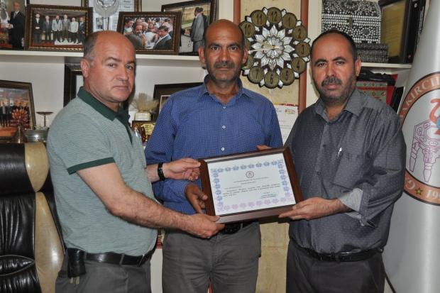 Gaziantep’te bakır ve sedefçilik alanında 40 yıldır emek veren Ali Bayram Bakır, Gaziantep Bakırcılar ve Sedefçiler Odası tarafından ödüllendirildi.