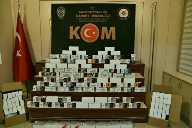 Gaziantep Emniyeti KOM Şube Müdürlüğü ekiplerince Şehitkamil İlçesinde bandrolsüz makaron satıldığı tespit edilen bir işyerinde yapılan aramada 46 bin 800 boş, 2 bin 700 dolu olmak üzere toplamda 49 bin 500 makaron ele geçirildi.
