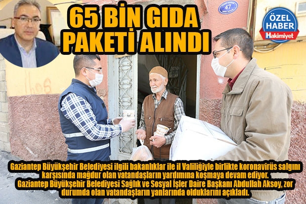 Gaziantep Büyükşehir Belediyesi Sağlık ve Sosyal İşler Daire Başkanı Abdullah Aksoy, belediyenin koronavirüs salgını nedeniyle zor durumda olan vatandaşlara dağıtılmak üzere 65 bin gıda kolisi hazırlattığını açıkladı. Yardım faaliyetinin Gaziantep Valiliği öncülüğünde oto kontrollü bir şekilde gerçekleştirildiğini anlatan Aksoy, Belediye Başkanı Fatma Şahin’in zor durumda olan tüm vatandaşların istek ve taleplerinin alınması yönünde talimat verdiğini açıkladı.
