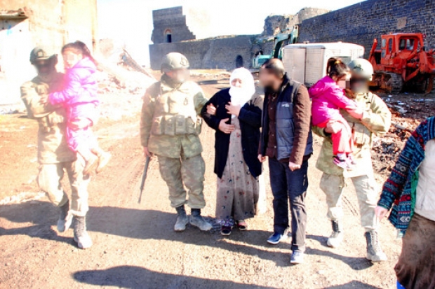 Operasyonlar kapsamında Sur ilçesi Hasırlı Mahallesi Zingilli Sokak’ta ikamet eden ve sokağa çıkma yasağının başladığı günden bu yana Bölücü Terör Örgütü (BTÖ) mensupları tarafından evlerini terk edip güvenli bölgeye gitmeleri engellenen, yaşları 5 ile 8 olan kız çocukları ve yanlarında 70 yaşındaki kadın ile komşuları olan toplam 5 kişilik bir aile düzenlenen operasyonla bulundukları bodrum katından kurtarılarak güvenli bölgeye nakledildi. Kurtarılan ailenin şahsi ihtiyaçları karşılanıp, sağlık kuruluşuna sevk edildi. Bulundukları bodrum katından kaçarak bir bölgeye kadar ilerleyen aileyi güvenli bölgeye taşımak için operasyon düzenleyen Mehmetçik, aile fertlerini sorunsuz bir şekilde bölgeden nakletti.