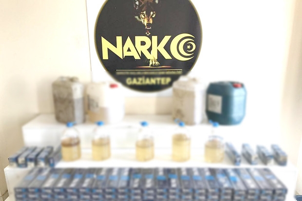 Gaziantep İl Emniyet Müdürlüğüne bağlı Narkotik Suçlarla Mücadele Şube Müdürlüğüne bağlı ekipler, yüklü miktarda uyuşturucu sevkiyatı yapılacağı bilgisi üzerine Başpınar Organize Sanayi Bölgesinde bir tırda arama yaptı. Sunta yüklü tırda yapılan aramada 9 akaryakıt bidonu içerisinde 75 kilo sıvı metamfetamin ve bin 440 paket gümrük kaçağı sigara ele geçirilirken tırın şoförü gözaltına alındı.