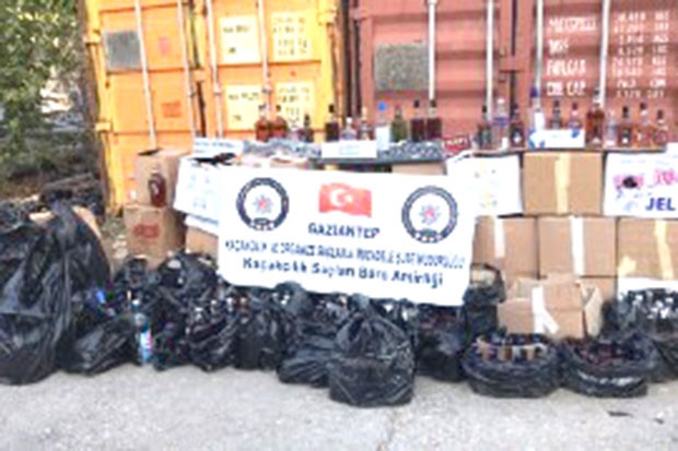 Gaziantep'te polis ekiplerince yapılan operasyonda 765 şişe sahte alkol ve 100 paket gümrük kaçağı sigara ele geçirildi.