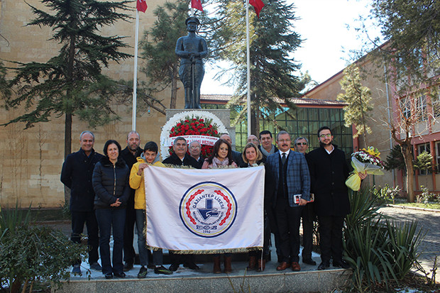Konuşmanın ardında Gaziantep Lisesi Mezunlar Derneği üyeleri, Gaziantep Lisesi bahçesinde bulunan Atatürk anıtına çelenk bıraktılar.