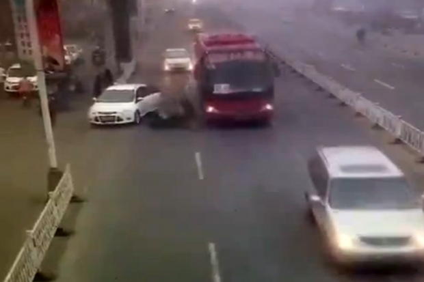 Çin’de yol kenarında duran otomobilin kontrolsüz açılan arka kapısı, korkunç bir kazaya yol açtı.