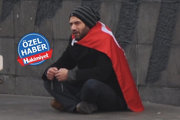 Demokrasi Meydanı’nda Atatürk Anıtı önüne omzuna astığı Türk bayrağı ile oturarak sessiz eylem gerçekleştiren kişi adının sorulması üzerine, “Ben şehidim” diye cevap verdi.