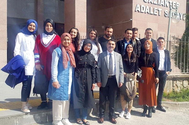 Teknik gezinin ikinci kısmında Adalet öğrencileriyle duruşma seyri gerçekleştirildi. Gaziantep İş Mahkemesinde duruşma seyreden öğrenciler duruşmadan sonra kendileri de duruşma provası yaparak uygulamayı bizzat deneme fırsatı buldu.