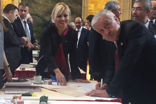 Ak Parti Gaziantep milletvekili Ahmet Uzer, 1 kasım seçimlerinde milletvekili seçildikten sonra Meclis'e giderek, milletvekili kaydını yaptırdı. Uzer, kayıt yaptırmaya seçimde beraber çalıştığı, parti teşkilatı yönetici ve üyeleri ile birlikte gitti. Uzer’e milletvekili rozetini iş adamı Celal Kadooğlu taktı.