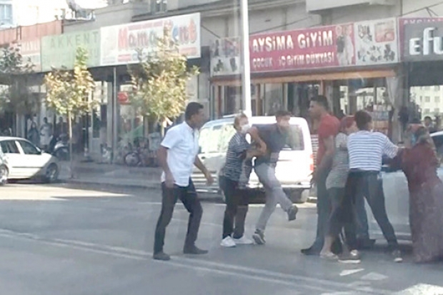 İki aile arasında çıkan kavga kameralara yansıdı. Kavgayı çevredeki vatandaşlar güçlükle yatıştırdı.