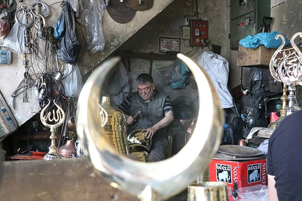 Boyları 4,5 metreye kadar uzanan bakır alemlerine ise ülkenin dört bir yanından talepler geliyor. Estetik açıdan da kubbe veya minarelerin adeta semaya yükseliyormuş gibi bir his uyandıran, Türk ve İslam sanatında cami, türbe ve medrese tipi kubbeli inşa edilen mekanların minare bölümlerinin üst kısımlarına yerleştirilen alemlerin meşakkatli yapımı için ustalar Ramazan ayında dahi mesai harcıyorlar.