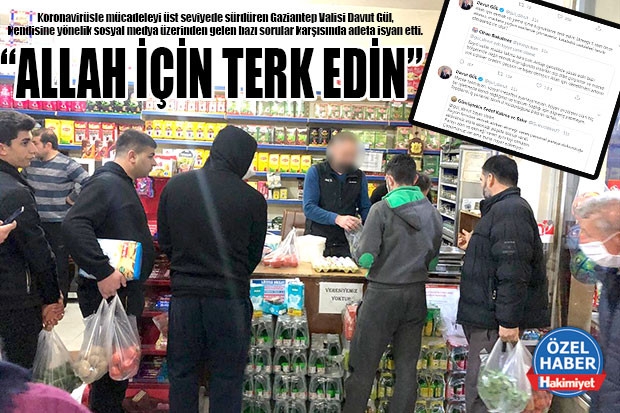 Ölümcül virüs karşısında tüm önlemleri eksiksiz olarak alan Gaziantep Valiliği tüm uyarılar ve kurallara rağmen kendi önlemini almayan vatandaşlar karşısında çaresiz. Sosyal medya hesabından kendisine ulaşan tüm vatandaşların sorularını cevaplayan Gaziantep Valisi Davut Gül, sonunda patladı. Fırın ve marketlerde kalabalık karşısında yetkililer çaresiz kalırken Gaziantep Valisi Davut Gül, “Allah için ekmek vb. yeme içme kuyruklarını terk edin! Ekmeği 5 saat önce alsanız, markete yoğun saatlerde gitmeseniz, kalabalık caddeleri tercih etmeseniz ne olur?” diye konuştu.