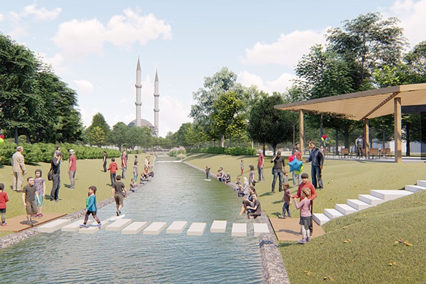 Projede sinevizyon gösterileri yapmaya müsait 1000 metre küp hacimli açık su deposu ve paket arıtma ünitesi de yapılacağını dile getiren Sönmezler, “Belli bir dere kesiti içesinden sürekli akan su, proje alanı sonunda bir pompa yardımıyla alınarak paket arıtma ünitesinde arıtılıp livas görünümü verilen su kanalları ile tekrar dere kesitine bırakılacak. Su döngüsel olarak arıtıldığı ve pompa merkezindeki otomatik cihazlarla sürekli analiz yapılacağı için dereden akan suya gönül rahatlığı ile girilebilecek. Dere ve diğer sulu alanlardaki derinlik, herhangi bir risk taşımayacak ve güvenle hareket edilebilecek yükseklikte olacağından suyla temas etmek beklentilerin de ötesinde olacak” dedi.