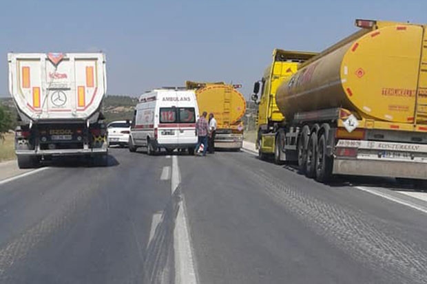 Gaziantep'in Nurdağı ilçesinde hasta almaya giden ambulans, yakıt tankerine arkadan çarptı. Kazada şans eseri yaralanan olmadı.