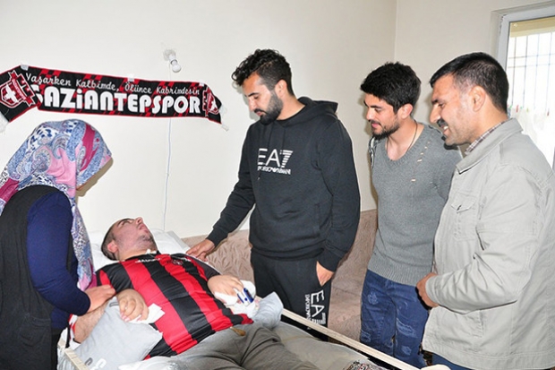 Gaziantepspor'un kaptanı Elyasa Süme ve Abdulkadir Kayalı, hasta olan Gaziantepspor taraftarı Mustafa Payam’ı evinde ziyaret etti.
