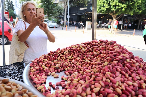 Adana’da hem taze hem kuru olarak tüketilen Antep fıstığı tezgahlardaki yerini aldı. Geçen yıl kilosu 15 liraya kadar düşen kabuklu yaş Antep fıstığı bu yıl 40-50 liradan satılıyor.