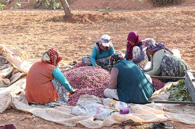 Gaziantep'te “Yeşil Altın” olarak adlandırılan Antep fıstığının hasadı iki haftadır sürüyor ve bir çok bahçede fıstıklar toplandı bile. Yavuzeli bölgesinde fıstık bahçeleri bulunan üretici Mehmet Dağdalen, “Hasat üç aşamada gerçekleşir. Antep fıstığının dış kabuğu yeşilden boz rengine döndüğünde, yani kabuğu çıtlamadan toplandığında fıstığın içi en koyu yeşil, en güçlü rayihayı verir. Boz fıstık adı verilen bu ürün baklavada ve dondurmada kullanılır. Biraz daha olgunlaşan fıstık çikolata ve lokum endüstrisinde tercih edilir. Bir ay sonra, hasatın sonunda, yani tüm kabuklar çıtladığında ise çerezciler ve kuruyemişçiler için en makbul olan ürün ortaya çıkmış olur” dedi.