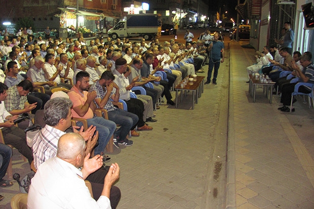 Arabanlı vatandaşlar ile birlikte demokrasi nöbeti tutan Araban Kaymakamı Cuma Emeç, demokrasi şehitleri için Yasin Suresini okudu.
