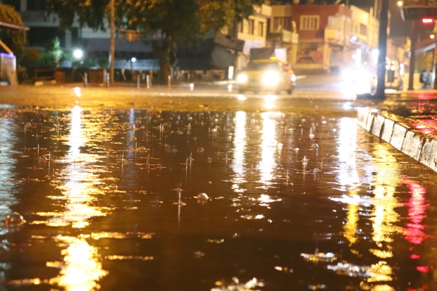 İlçedeki vatandaşlar ve araç sürücülerine zor anlar yaşatan yağmurun Recep Tayyip Erdoğan Parkı içerisindeki süs bitkisi ve ağaçlarla buluşma anı isekartpostallık manzaralara neden oldu.