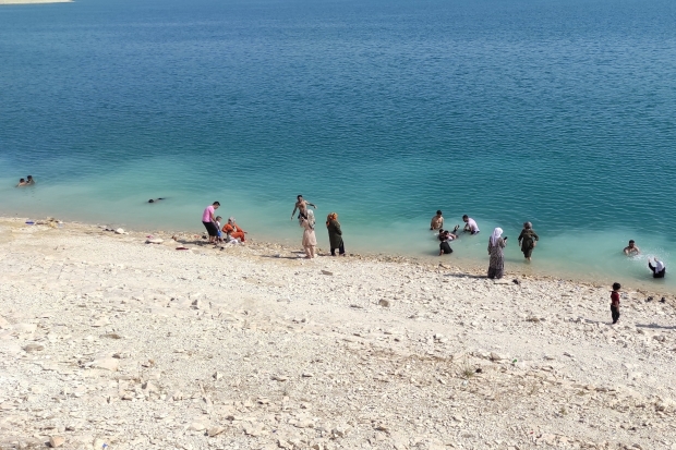 Şanlıurfa'da son günlerde yaşanan boğulma vakalarına rağmen sıcaktan bunalanlar, tehlikeli ve yasak olmasına rağmen baraj gülünde serinledi.