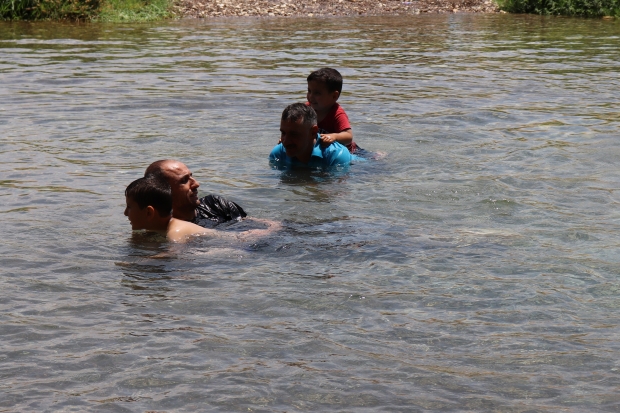 Gaziantep’in Araban ilçesinde aşırı sıcaklardan bunalan vatandaşlar, Ak Pınar su gözünde ve sıtma pınar çayının sularında serinlemeye çalışıyor.