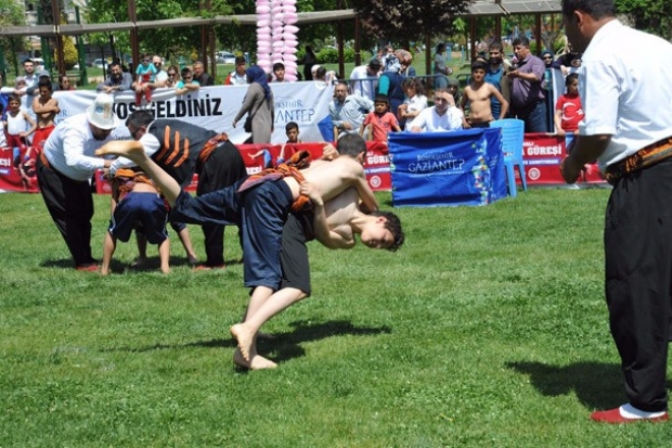 Türkiye Geleneksel Spor Dalları Federasyonunun Gaziantep Büyükşehir Belediyesinin katkılarıyla düzenlediği Minikler ve Yıldızlar Aba Güreşi Türkiye Şampiyonası, Gaziantep'te başladı.