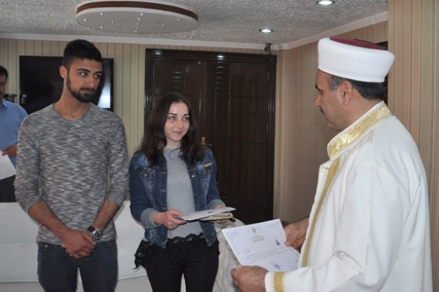 Gaziantep'in İslahiye İlçesi'nde, inşaat işçisi 24 yaşındaki Emre Can ile resmi nikah kıyan Ukraynalı 24 yaşındaki Alona Simonchuk, Müslüman olup Gonca ismini aldı.
