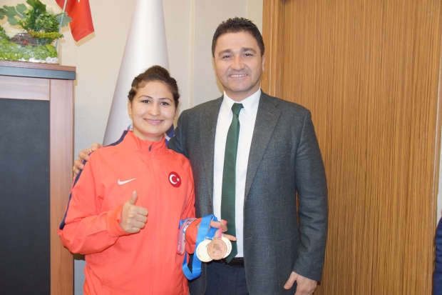 Ermenistan’da düzenlenen taekwondo Avrupa şampiyonasında üçüncü olarak şehre dönen Ayşegül Gökkaya Gaziantep Gençlik Hizmetleri ve Spor İl Müdürü Ökkeş Demir’i ziyaret etti.