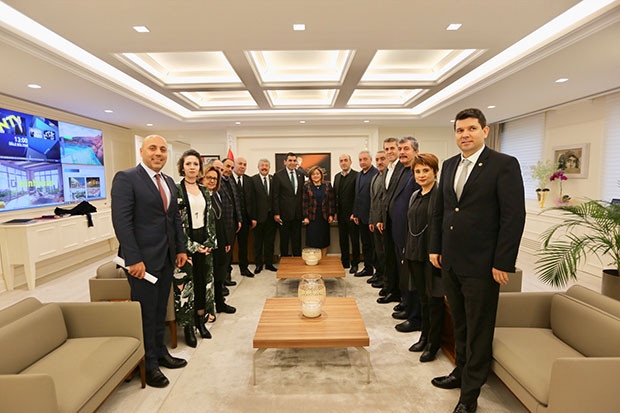 Taşlıca bölgesinde oluşturulacak yeni sanayi sitesi çalışmalarıyla ilgili Gaziantep Ticaret Odası (GTO) Yönetim Kurulu Başkanı Beyhan Hıdıroğlu başkanlığında, Yönetim Kurulu Başkan Yardımcısı Fatih Güllüoğlu, Yönetim Kurulu üyeleri Ömer Faruk Melekoğlu, Murat Karakaş, Kamil Tosun, meclis üyesi Haci Şeker, Gaziantep Ticaret Odası’nın öncülüğünde kurulan Taşlıca Plastik ayakkabı ve Terlik Küçük Sanayi Sitesi Başkanı Fatih Altuntuğ, Yönetim Kurulu üyeleri Mahir Bayram, Fethi Sıvakçıgil, Abdülkadir Kırbaç, Osman Gözeri, Atilla Melekoğlu, Fikret Çetintaş, Fatih Candar ve Alattin Çıtlık, GTO Genel Sekreter Vekili Figen Çeliktürk, Büyükşehir Belediye Başkanı Fatma Şahin’i ziyaret etti. Ziyarette, heyet Gaziantep’in ekonomik yapılanmasında önemli bir yere sahip olan, plastik ayakkabı ve terlik sektörüne verdiği desteklerden dolayı Büyükşehir Belediye Başkanı Fatma Şahin’e teşekkür etti.
