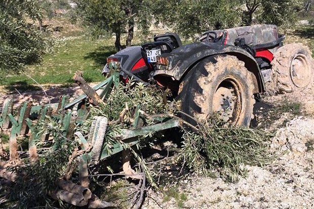 Öte yandan şahsın kullandığı 27 JE 479 plakalı traktörün bir ağaç köküne takılarak uzun süre patinaj yaptığı ve arka lastik kauçuğunun ise büyük oranda eridiği gözlendi.