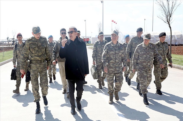 Bakan Akar, beraberinde Orgeneral Güler ve Orgeneral Dündar ile Gaziantep Havalimanı'na geldi. Bakan Akar ve komutanlar buradan askeri helikopterlerle sınır birliklerine gitti.
