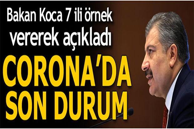 Sağlık Bakanı Fahrettin Koca Türkiye'nin günlük koronavirüs tablosunu açıkladı. Türkiye'de son 24 saatte 1016 kişiye Covid-19 tanısı konuldu, 21 kişi hayatını kaybetti, toplam vaka sayısı 211 bin 981, can kaybı 5 bin 344 oldu. Bakan Koca yaptığı açıklamada son 3 günde vaka sayılarında en çok düşüş olan 7 ili de sıraladı.