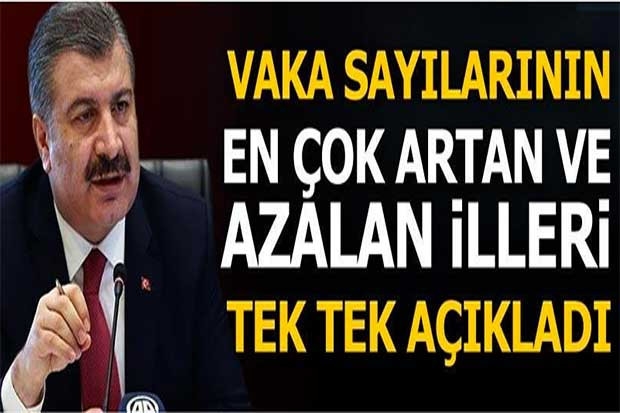 Sağlık Bakanı Fahrettin Koca Türkiye'nin günlük corona virüs tablosunu açıkladı. Türkiye'de son 24 saatte 919 kişiye covid-19 tanısı konuldu, 17 kişi hayatını kaybetti, toplam vaka sayısı 227 bin 19, can kaybı 5 bin 630 oldu. Son 24 saatte 982 kişinin daha iyileşmesiyle covid-19 tedavisi tamamlananların sayısı 210 bin 469 oldu. Öte yandan Bakan Koca kritik illeri de açıkladı.