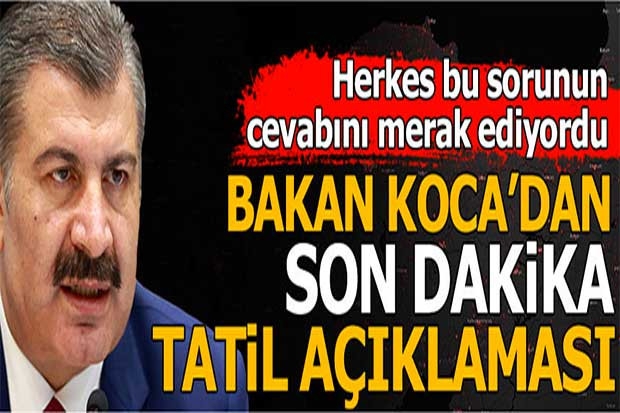 Sağlık Bakanı Fahrettin Koca Türkiye'nin son 24 saatlik corona virüs tablosunu açıkladı.Türkiye'de son 24 saatte 933 kişiye yeni tip koronavirüs (Kovid-19) tanısı konuldu, 21 kişi hayatını kaybetti, toplam vaka sayısı 216 bin 873, can kaybı 5 bin 440 oldu.Türkiye'de son 24 saatte yeni vaka sayılarını Sağlık Bakanlığı bölge bölge açıkladı. Öte yandan Bakan Koca'dan flaş tatil uyarısı geldi.