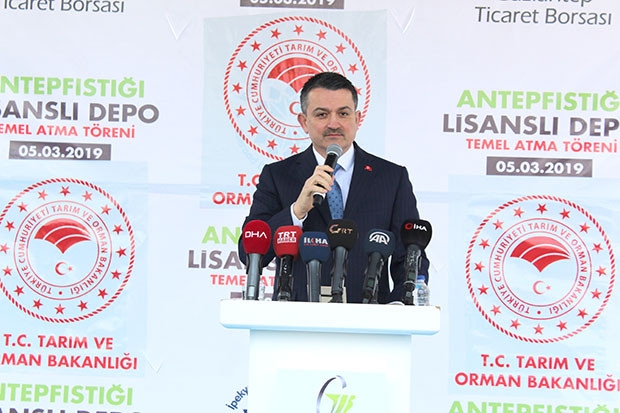Gaziantep'te Antep Fıstığı Lisanslı Depoculuk Tesisi temel atma törenine katılan Tarım ve Orman Bakanı Bekir Pakdemirli, lisanslı depoculuk sertifikası alan üreticilere faizsiz ya da düşük faizle kredi imkanı sağlanacağını belirterek, üreticilere gelir garantili ürün sigortasını müjdeledi.